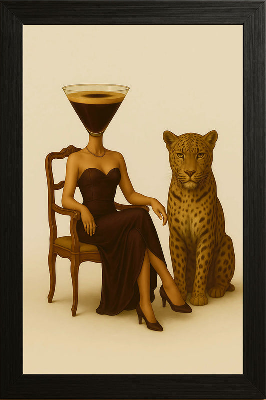 Espresso Martini Kafalı Kadın ve Çita Posteri